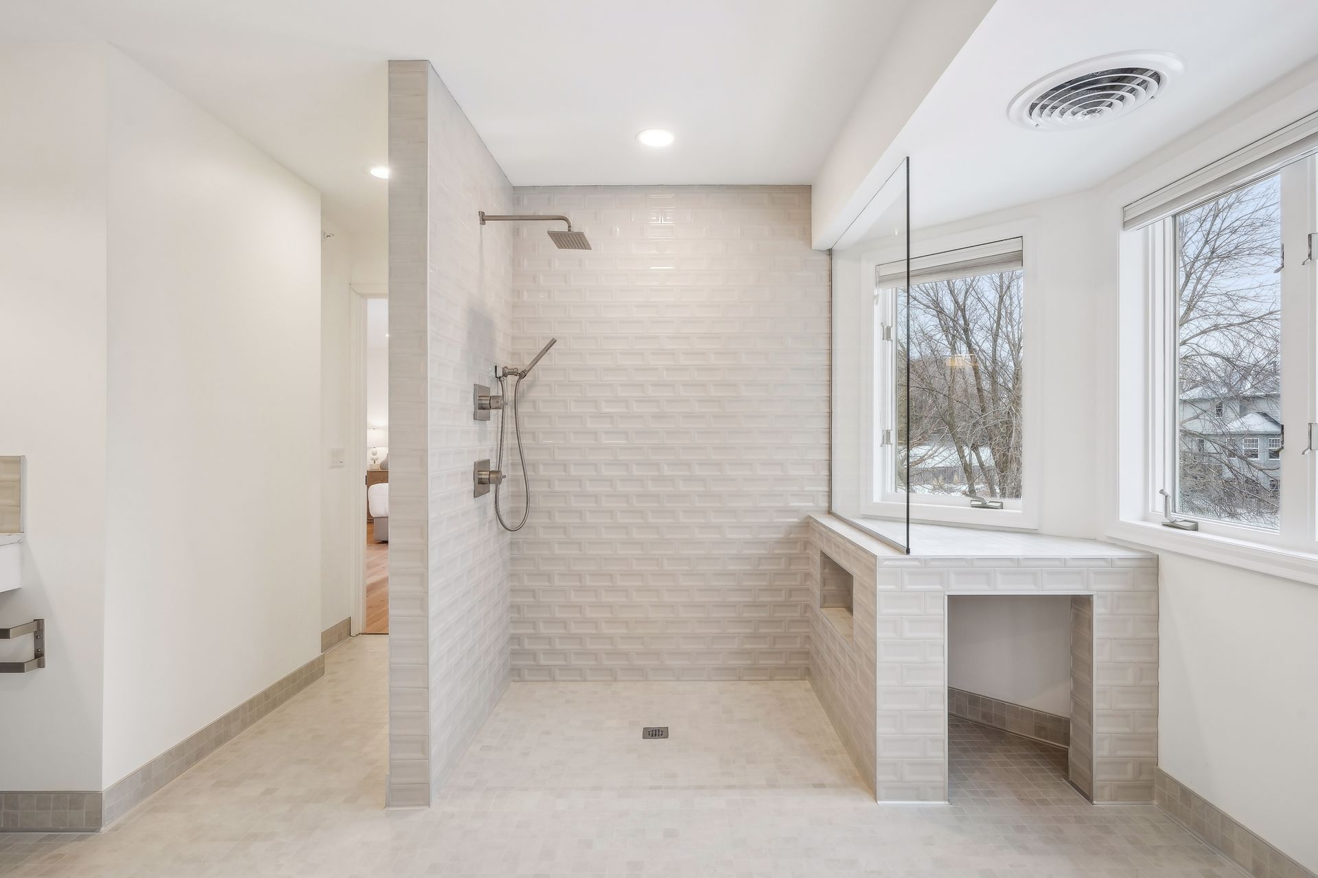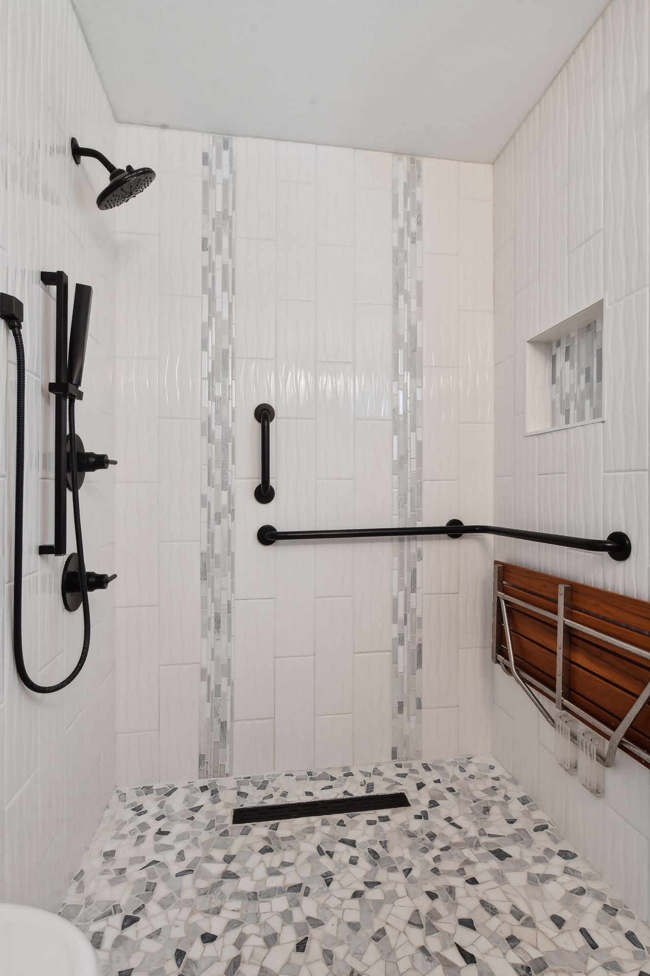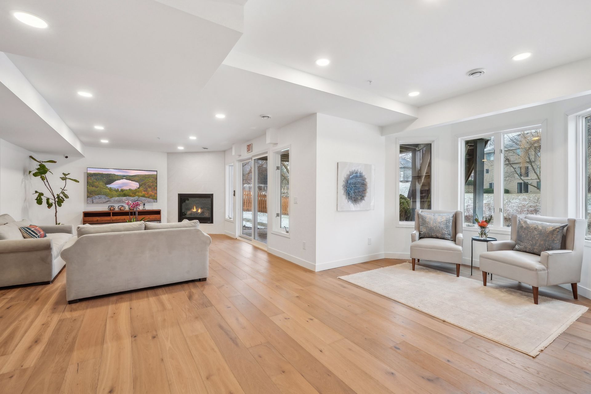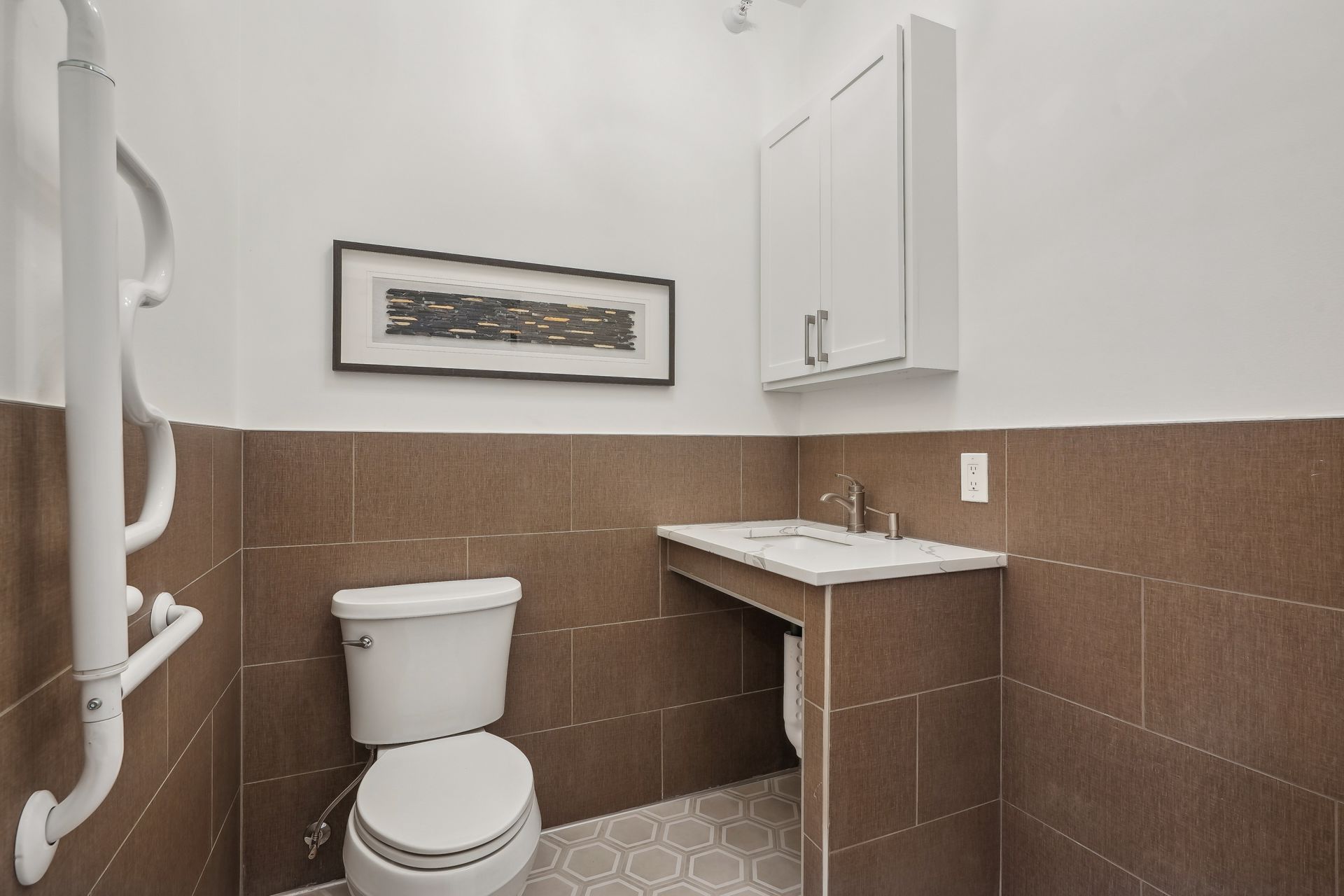 Syncare Grandview includes walk-in, fully tiled showers designed for safety and ease of use, along with an elevator that ensures seamless access across all three levels. The main living area features a warm, inviting fireplace, while the spacious lower level offers additional gathering and activity space highlighted by a second beautiful fireplace—ideal for relaxation, socialization, and therapeutic activities.