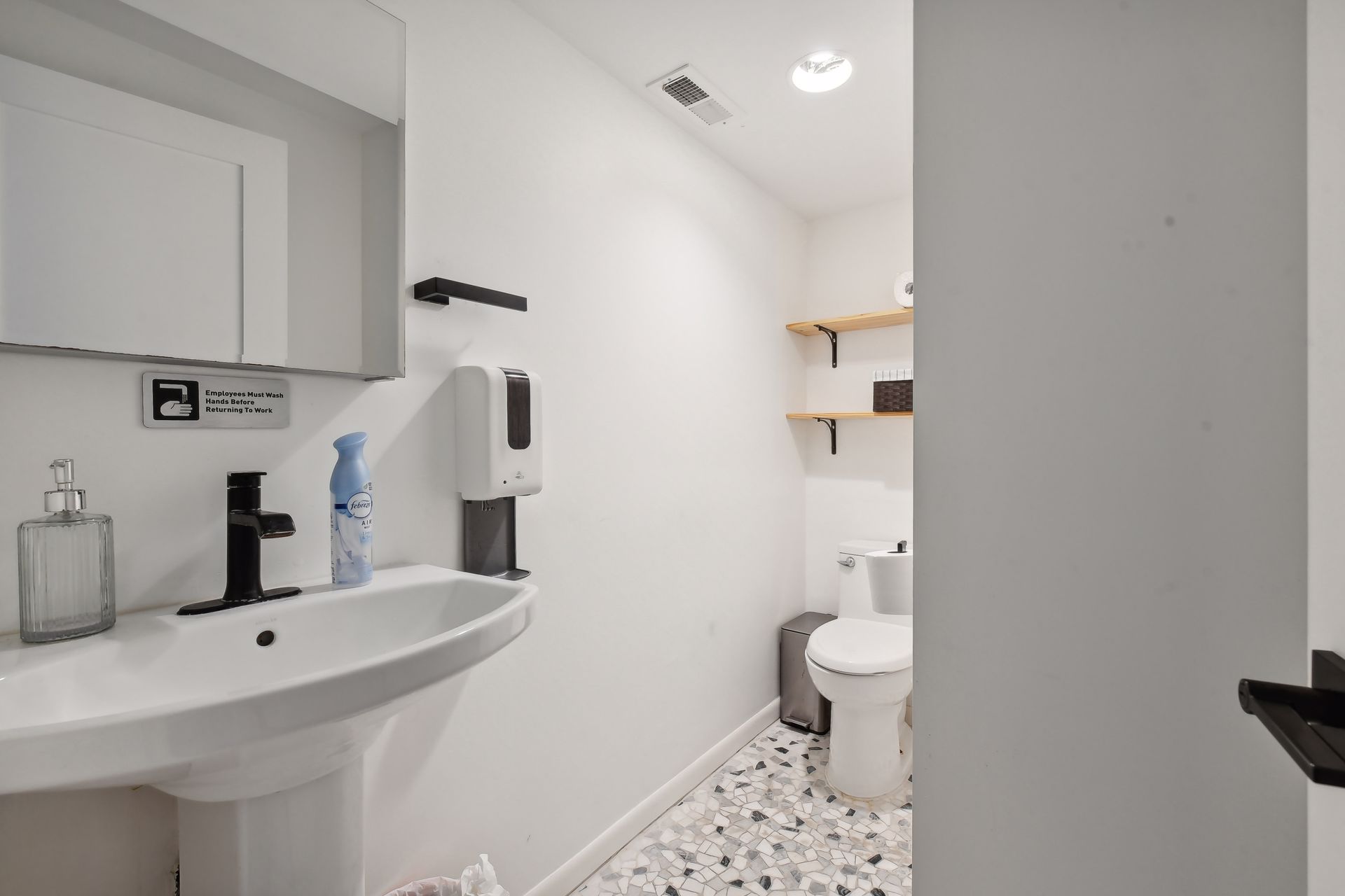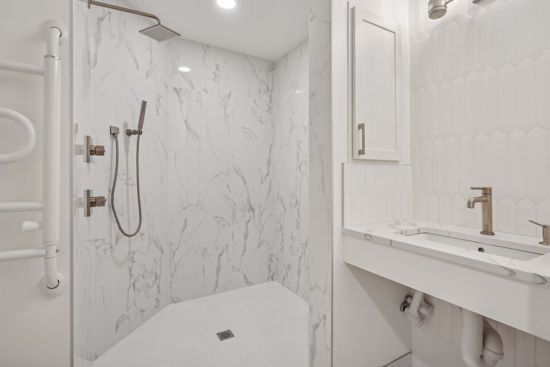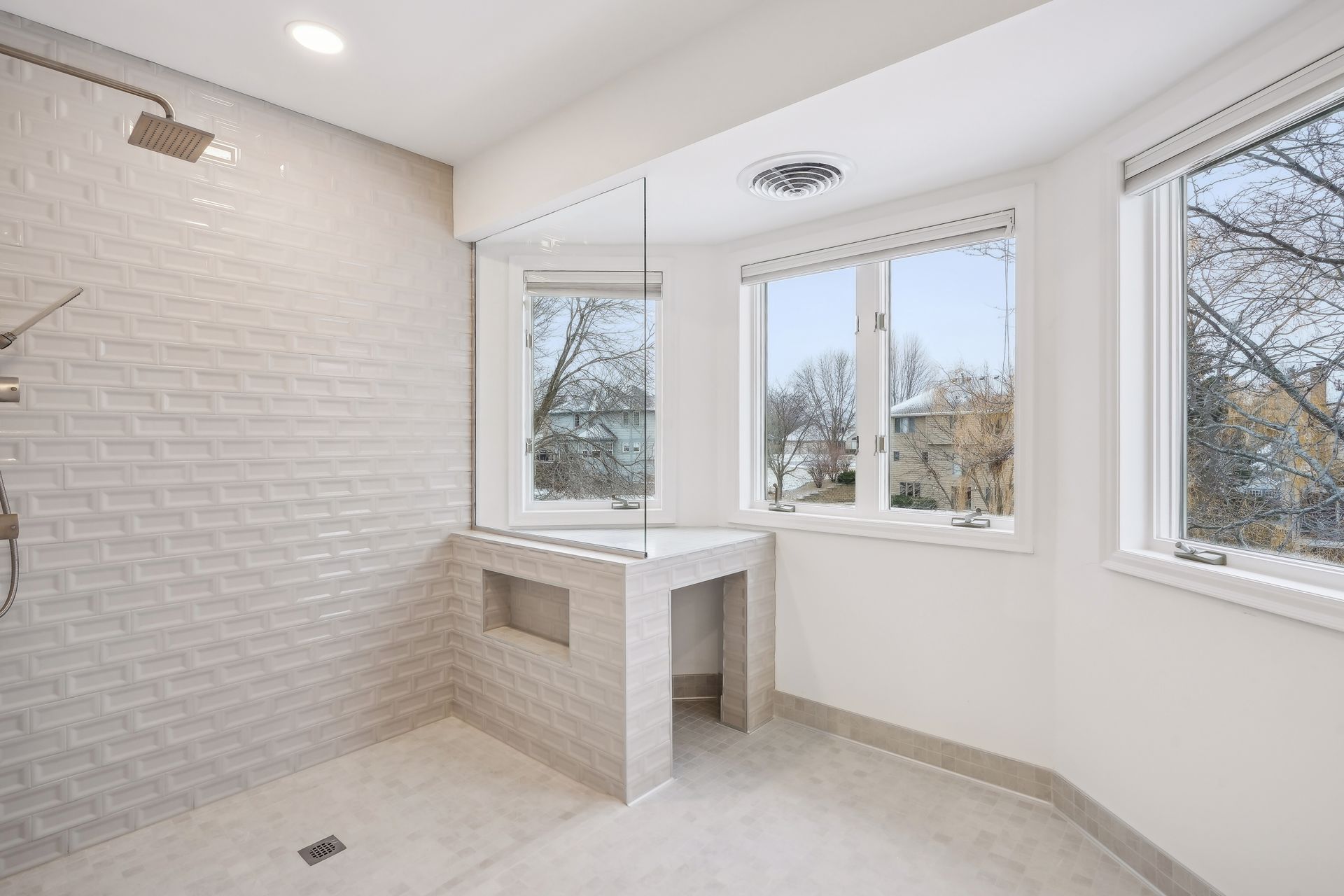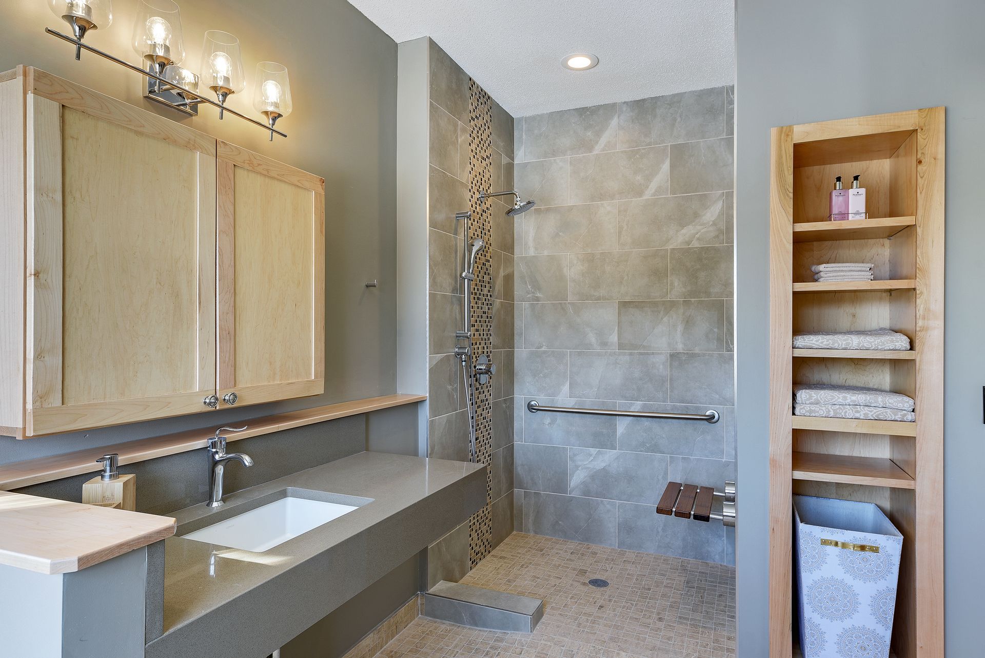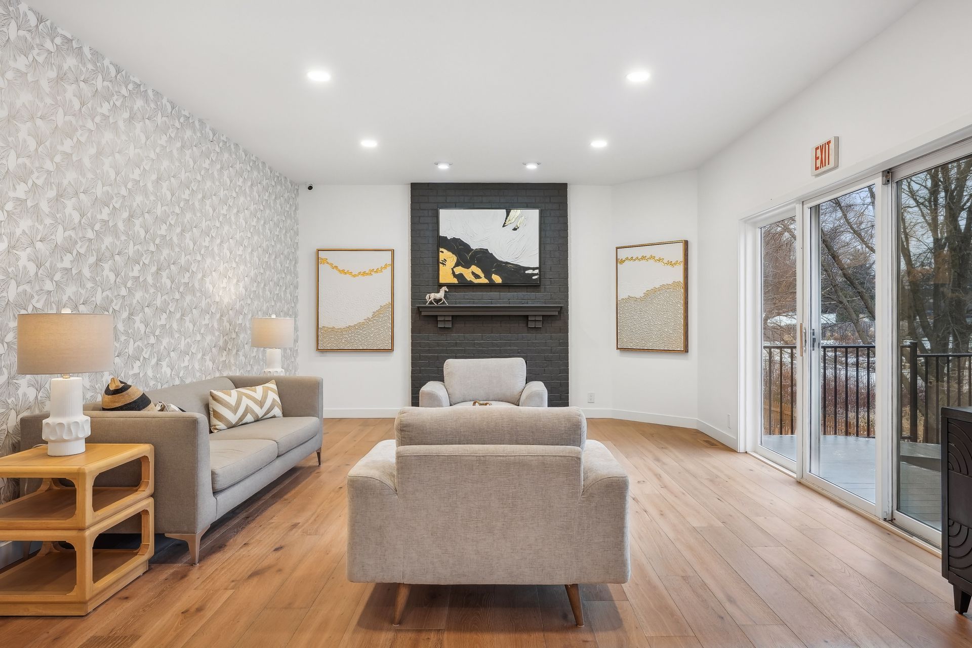 Syncare Grandview includes walk-in, fully tiled showers designed for safety and ease of use, along with an elevator that ensures seamless access across all three levels. The main living area features a warm, inviting fireplace, while the spacious lower level offers additional gathering and activity space highlighted by a second beautiful fireplace—ideal for relaxation, socialization, and therapeutic activities.