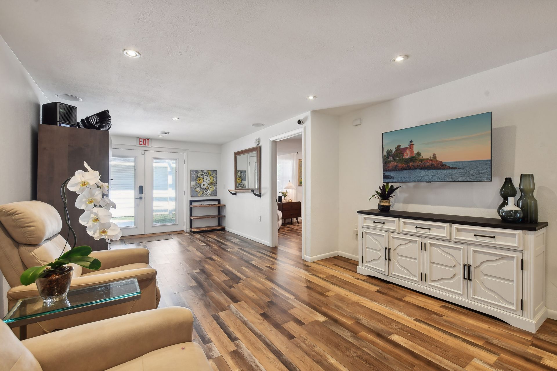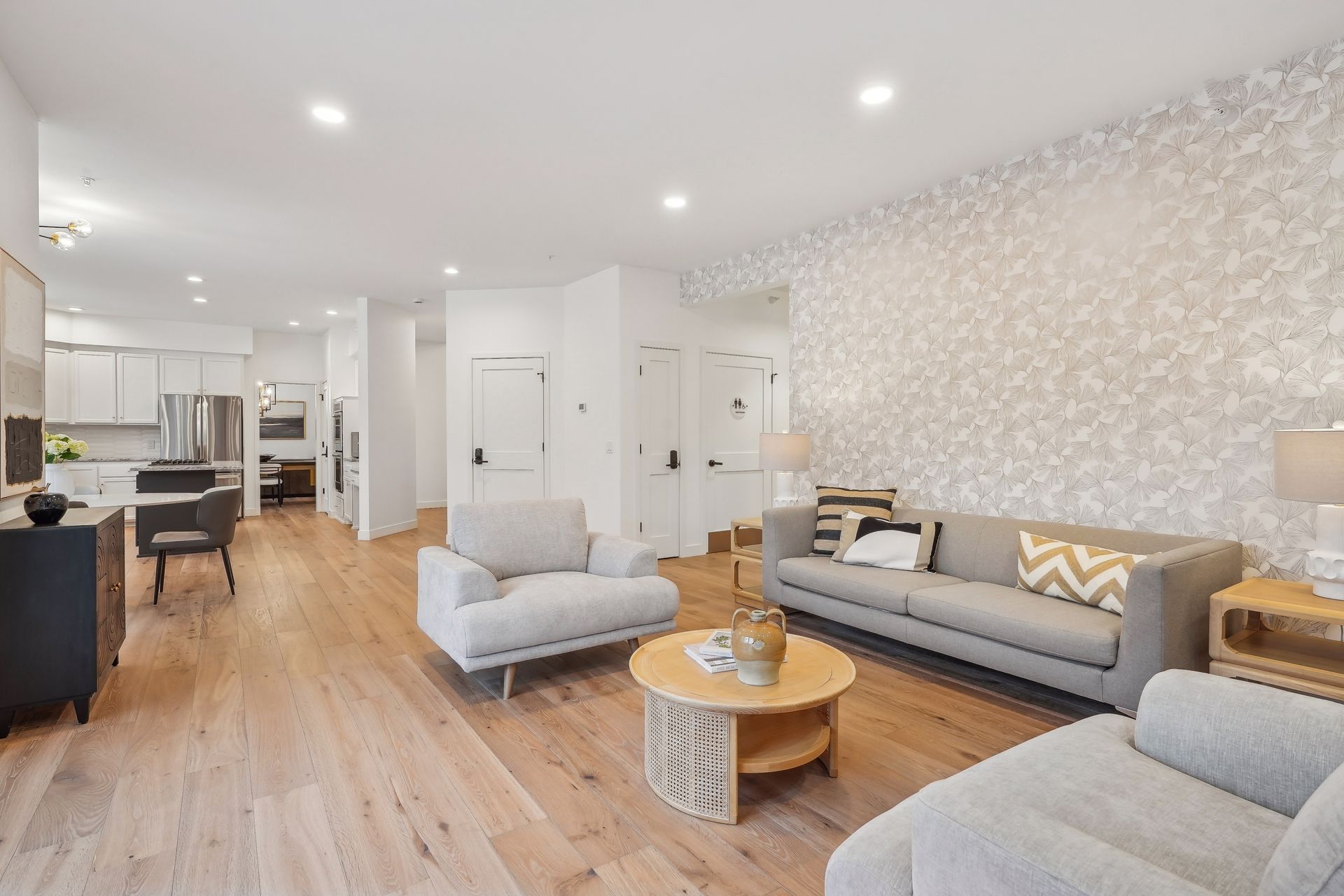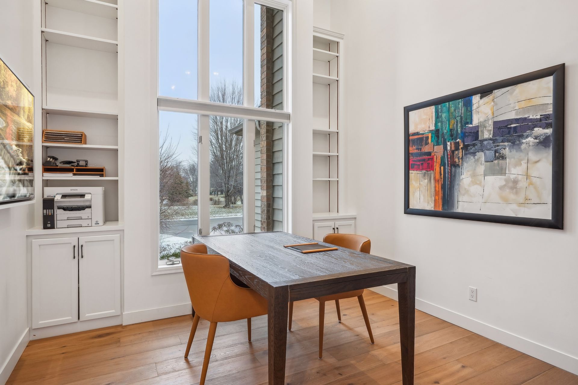 The home features hardwood flooring throughout and expansive open common areas that encourage movement, social interaction, and ease of navigation. Large windows provide abundant natural light and offer peaceful pond views, creating a calm and uplifting environment for residents.