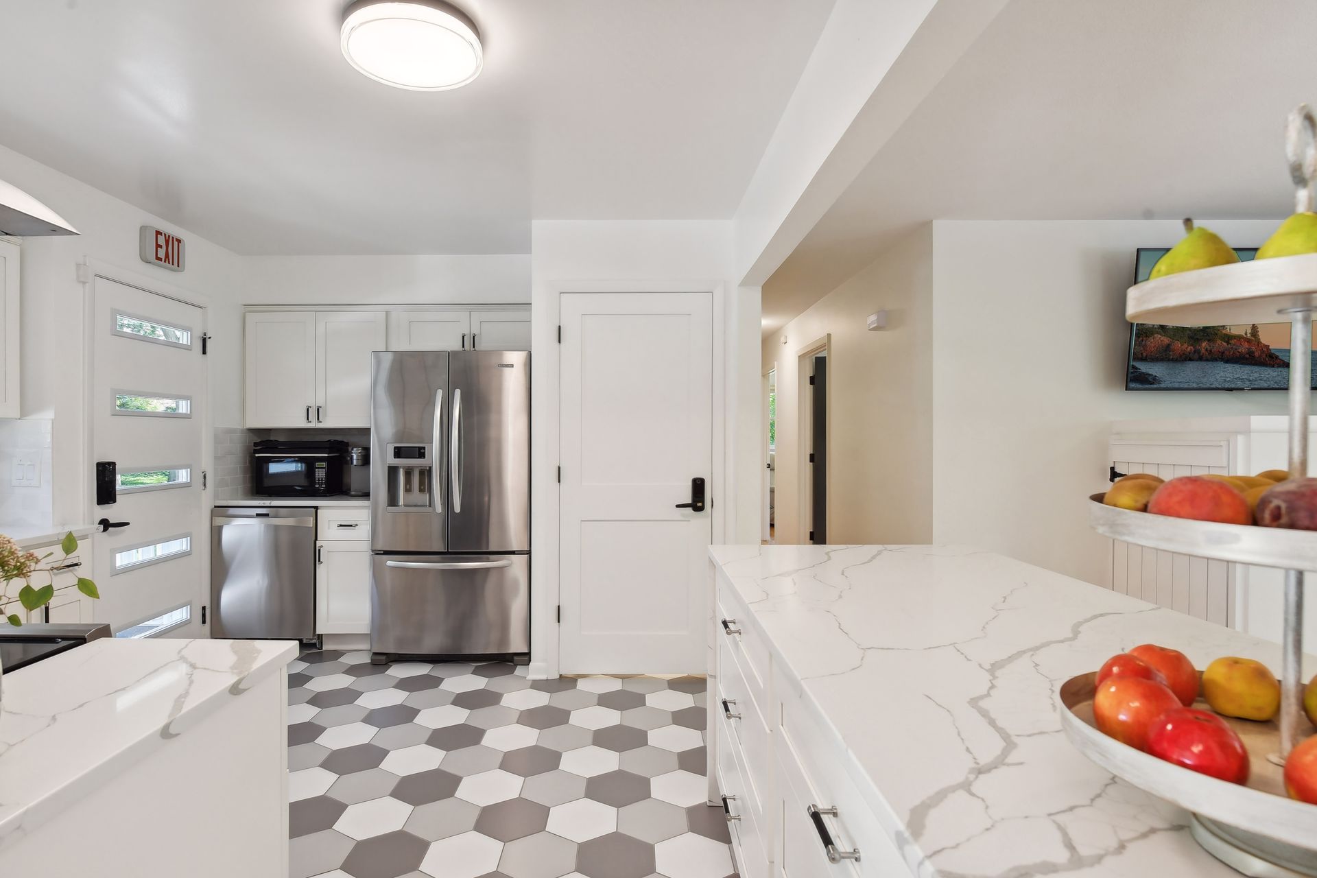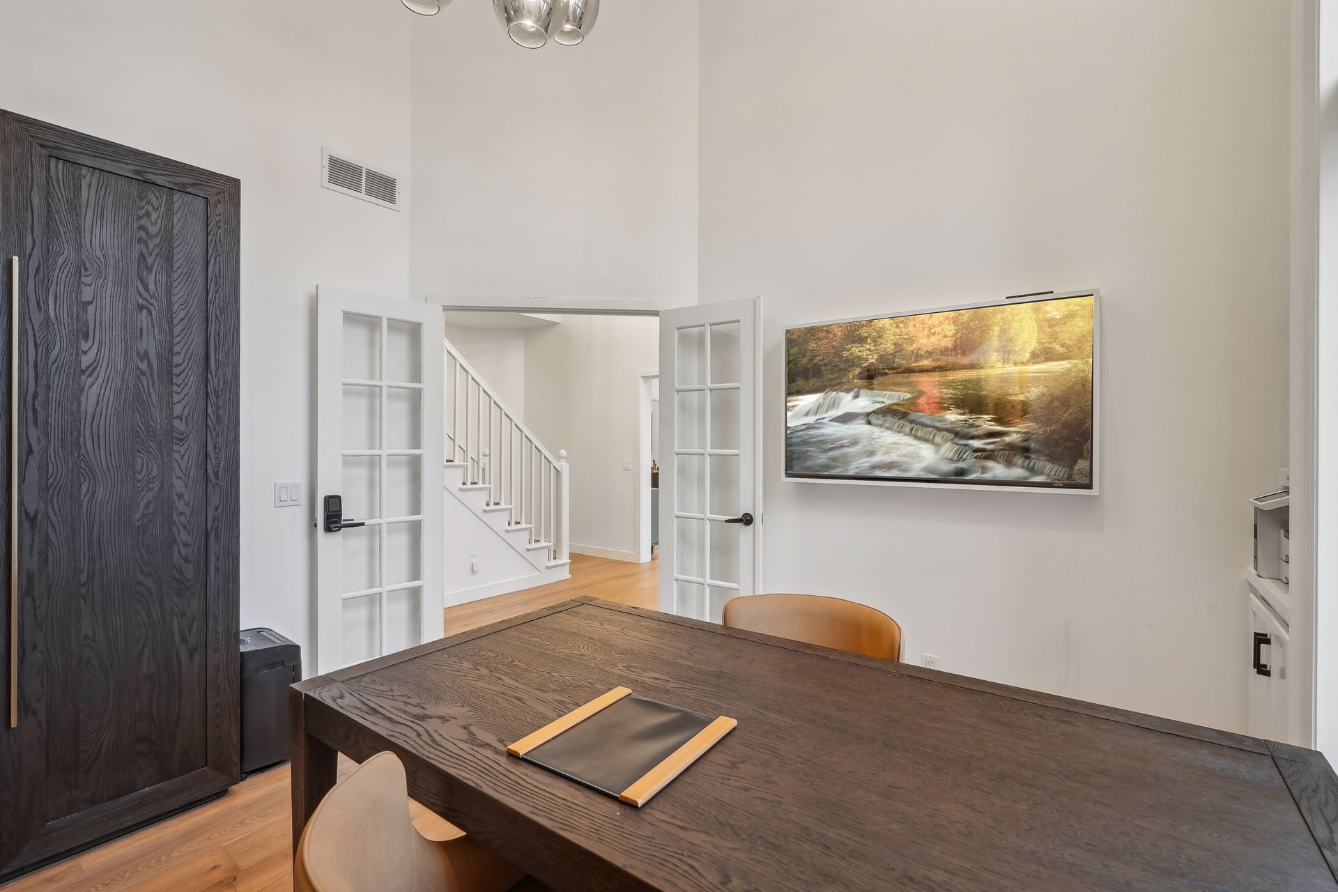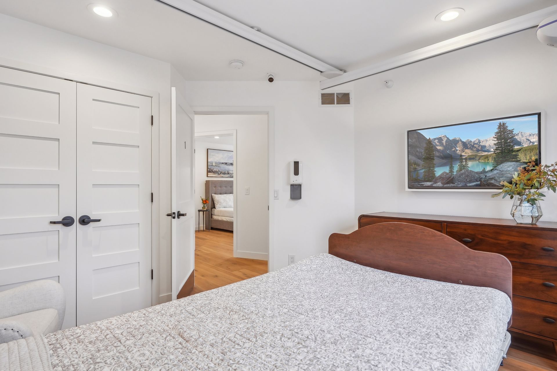 To support rehabilitation and wellness, the home offers a dedicated exercise space equipped with a ballet bar and an interactive exercise mirror that uses app-based technology to guide workouts and support individual and group exercise classes. A chef-style commercial kitchen allows for nutritious, high-quality meals tailored to residents’ dietary and recovery needs.