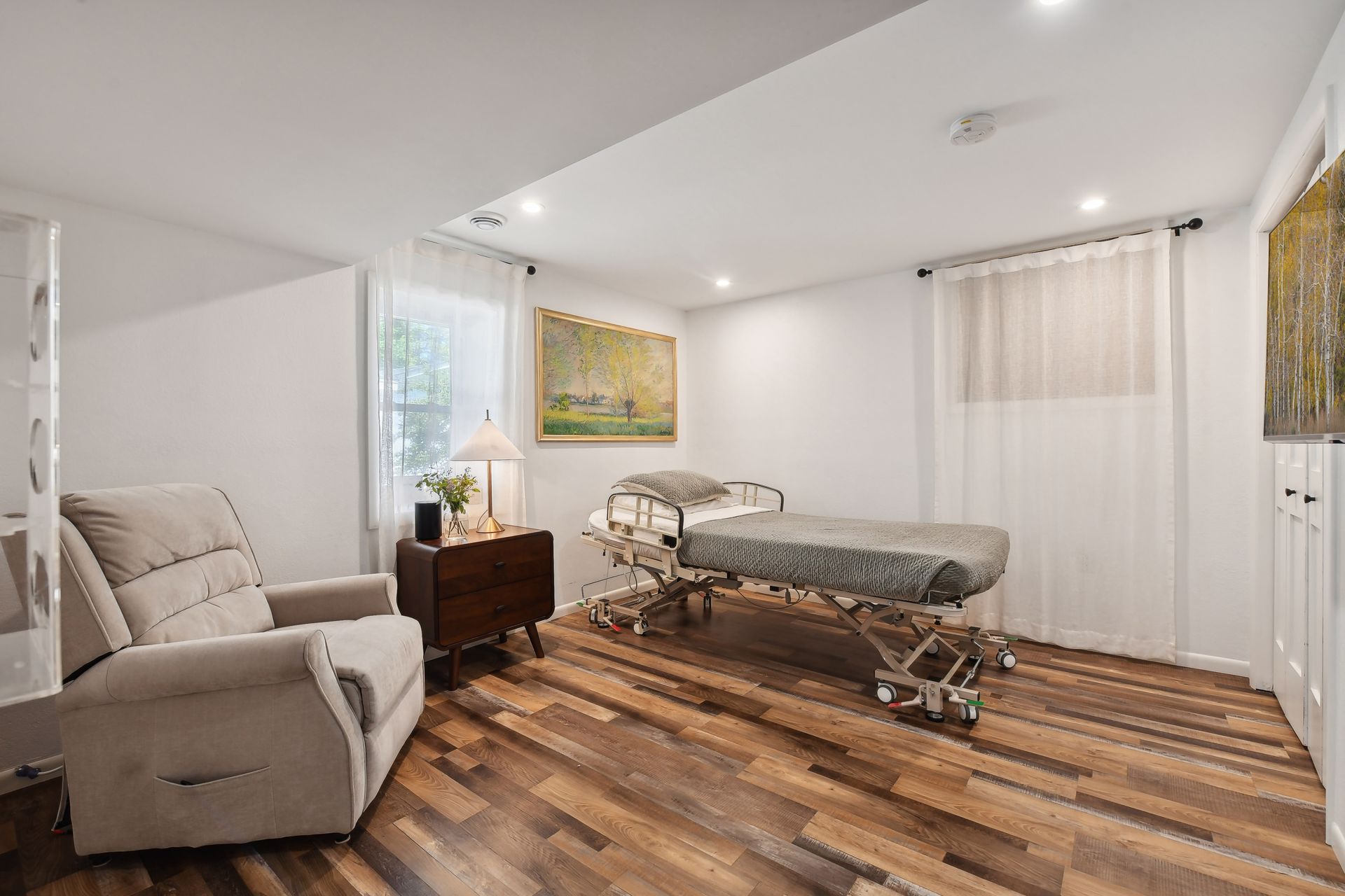 Syncare Grande features private resident rooms with ensuite bathrooms, offering both dignity and personal space. Bathrooms are equipped with roll-in and walk-in showers, designed to support mobility needs while promoting comfort and independence. The home includes hardwood flooring throughout, providing a clean, warm, and easy-to-navigate environment.
